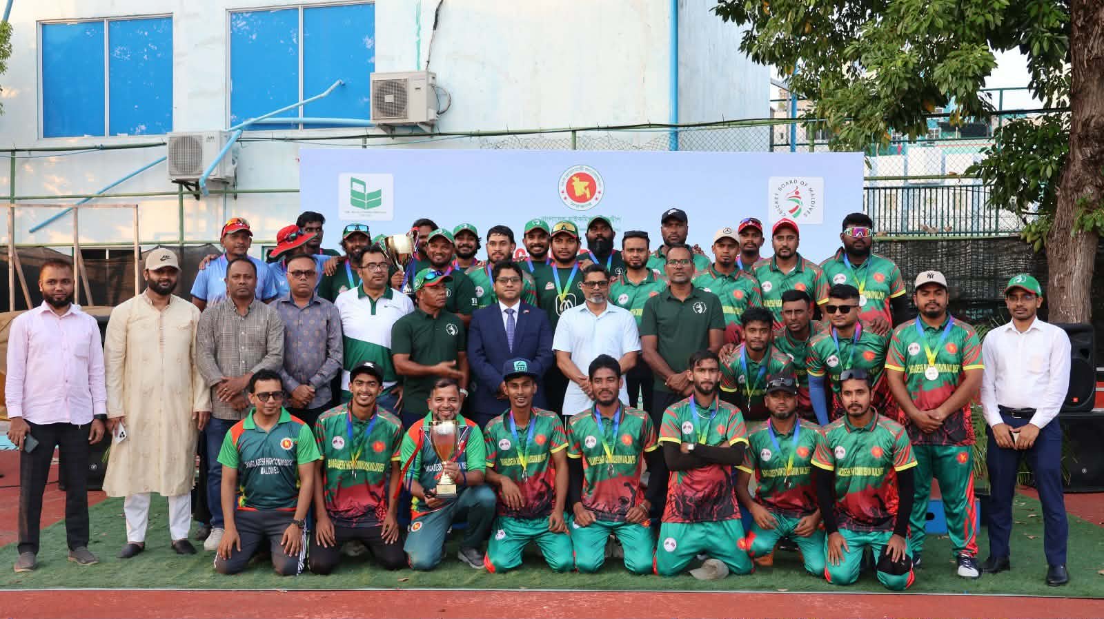 শুক্রবার ছুটির দিনে একদিনের এই ক্রিকেট টুর্নামেন্টে ১১৪ রানের লক্ষ্য নিয়ে ব্যাট করতে নেমে মাত্র ২ উইকেট হারিয়ে ১১৯ রান সংগ্রহ করে চ্যাম্পিয়ন ট্রফি জয় করে মালদ্বীপ ক্রিকেট টিম। মালদ্বীপের জাতীয় ক্রিকেট স্টেডিয়ামে অনুষ্ঠিত এই টুর্নামেন্টে বিজয়ী দলের হাতে পুরস্কার তুলে দেন মালদ্বীপের ক্রীড়া, ফিটনেস ও বিনোদন মন্ত্রী আব্দুল্লাহ রাফিউ। রানার-আপ দলের হাতে পুরস্কার তুলে দেন বাংলাদেশ হাইকমিশনার মোহাম্মদ নাজমুল ইসলাম।অনুষ্ঠানে উপস্থিত ছিলেন মিশনের শ্রমসচিব মোহাম্মদ সোহেল পারভেজ পিও মোঃ হাবিবুর রহমান , মালদ্বীপ বিএনপির সভাপতি মো. খলিলুর রহমান এবং বাংলাদেশ ফোরাম মালদ্বীপের সাধারণ সম্পাদক মো. সাজ্জাদ হোসেন, প্রবাসী আধিকার পরিষদে মালদ্বীপ শাখার সভাপতি মো. আলমগীর সিকদার , এন,বি এল মানি ট্রান্সফার প্রাইভেট লিমিটেডের লোকাল ডিরেক্টর হান্নান খান কবির, সিও মো. মাকসুর রহমান সহ অসংখ্য প্রবাসী বাংলাদেশীরা।খেলা শেষে পুরস্কার বিতরণীর পূর্বের বক্তব্যে হাইকমিশনার বলেন, এ ধরনের ক্রীড়া আয়োজন প্রবাস জীবনে মানসিক প্রশান্তি ও সুস্থ বিনোদনের সুযোগ সৃষ্টি করে। পাশাপাশি প্রবাসী বাংলাদেশিদের মধ্যে ঐক্য ও ভ্রাতৃত্ববোধ জোরদার করে। খেলাধুলার মাধ্যমে দুই দেশের জনগণের মধ্যে সৌহার্দ্য ও বন্ধন আরও দৃঢ় হবে বলে তিনি আশাবাদ ব্যক্ত করেন।