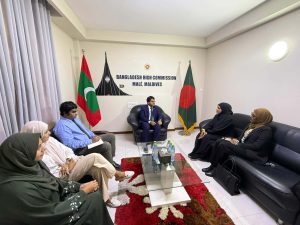 হাইকমিশনের সর্বাত্মক সহযোগিতার আশ্বাস প্রদান করেন। পাশাপাশি তিনি বাংলাদেশের সংশ্লিষ্ট উচ্চপর্যায়ের কর্তৃপক্ষ ও শিক্ষা প্রতিষ্ঠানগুলোর সঙ্গে সাক্ষাৎ আয়োজনের আগ্রহও প্রকাশ করেন।সৌহার্দ্যপূর্ণ পরিবেশে অনুষ্ঠিত এই বৈঠকটি বাংলাদেশ ও মালদ্বীপের মধ্যকার বন্ধুত্বপূর্ণ সম্পর্ক, পারস্পরিক আস্থা ও সহযোগিতার দৃঢ় প্রতিফলন, যা শিক্ষা কূটনীতি, সফট পাওয়ার এবং জনকূটনীতির মাধ্যমে দুই দেশের সম্পর্ককে আরও গভীর ও টেকসই করতে সহায়ক ভূমিকা পালন করবে।