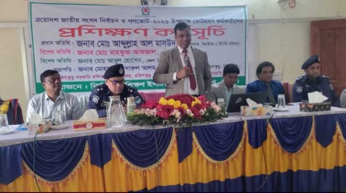নিজস্ব প্রতিনিধিঃ ঝিনাইদহের হরিণাকুন্ডু উপজেলায় ত্রয়োদশ জাতীয় সংসদ নির্বাচন ও গণভোট-২০২৬ উপলক্ষে ভোট গ্রহণ কর্মকর্তাদের প্রশিক্ষণ কর্মসূচি অনুষ্ঠিত হয়েছে। আজ শনিবার ( ৩১ জানুয়ারি) সকাল ১১ টায় হরিণাকুন্ডু বালিকা উচ্চ